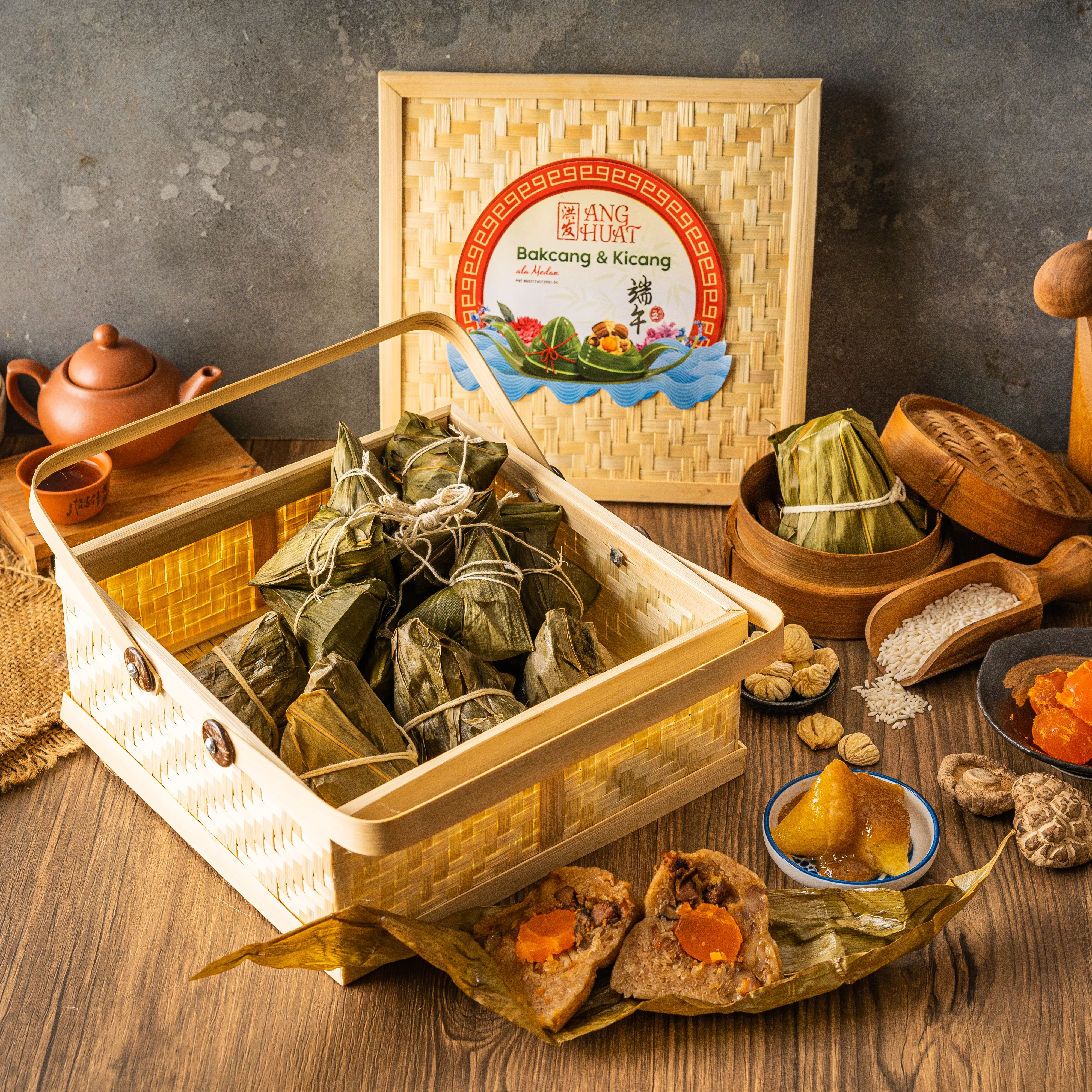 Bakcang ala Medan dengan isian yang lengkap, serta kue kicang yang dimakan dengan saus srikaya.